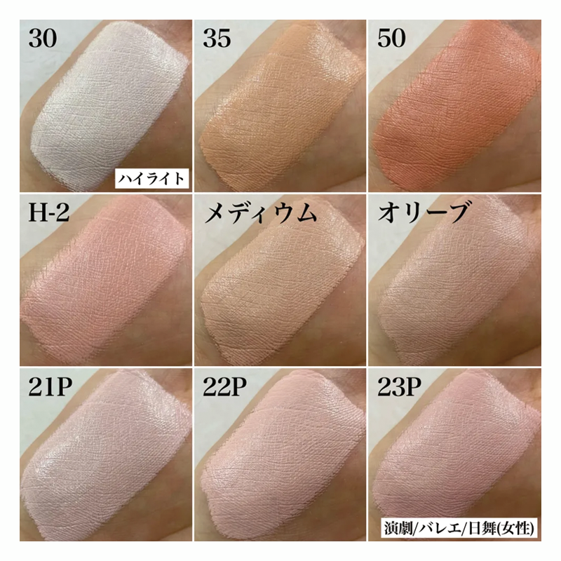 カバー力・付着力の高いクリーム状の油性ファンデーションで、「ドーラン」と呼ばれることもある、舞台演劇用の代表的な化粧品です。