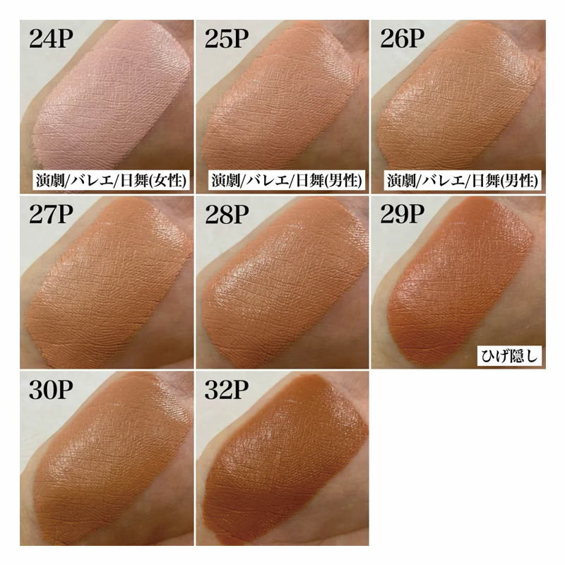 カバー力・付着力の高いクリーム状の油性ファンデーションで、「ドーラン」と呼ばれることもある、舞台演劇用の代表的な化粧品です。