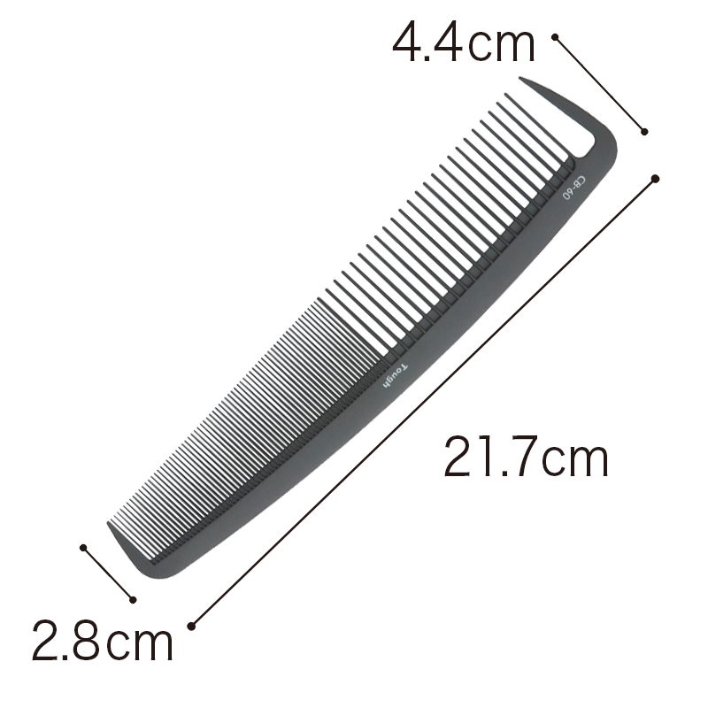 カーボン素材を使用しているため、適度な軽さと耐熱性に優れカット時の静電気を抑えます。