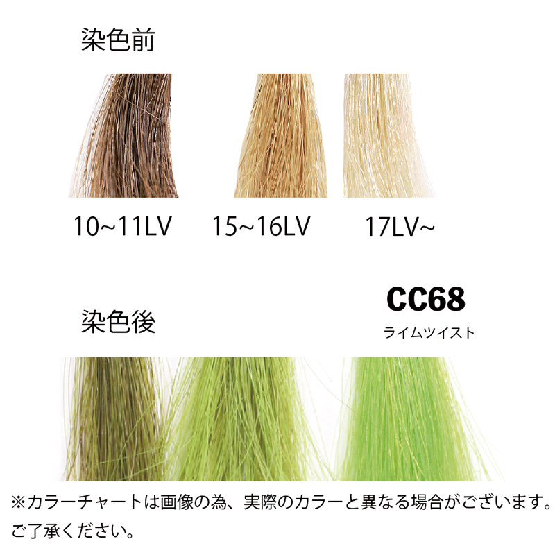 ※ ベースとなる髪色によっては、カラーチャートは実際に使用した際の発色と異なる場合もございます。