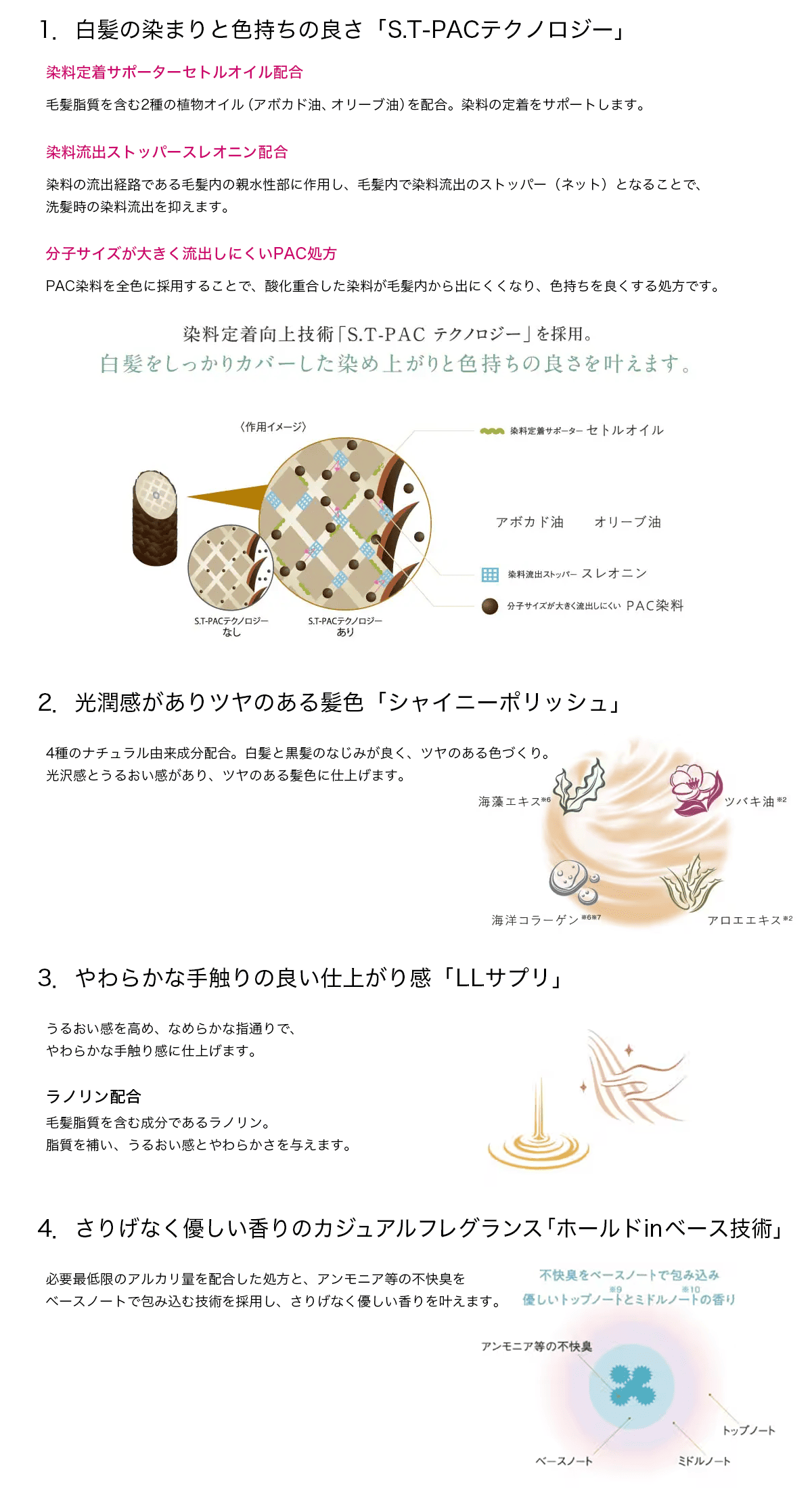 白髪の染まりと色持ちの良さ「S.T-PACテクノロジー」