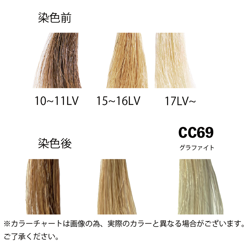※ ベースとなる髪色によっては、カラーチャートは実際に使用した際の発色と異なる場合もございます。