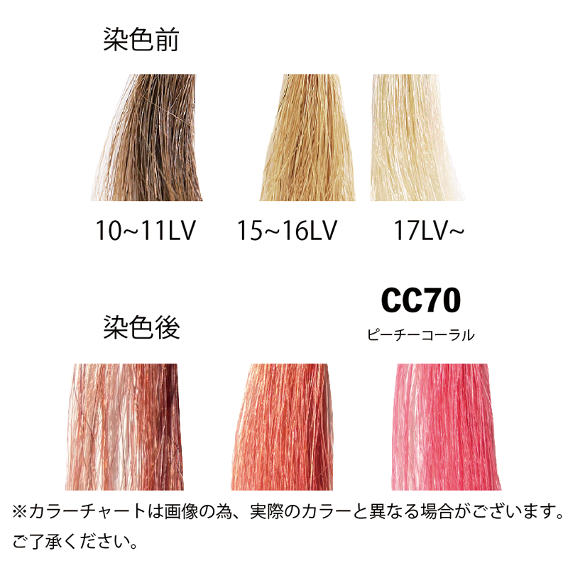 ※ ベースとなる髪色によっては、カラーチャートは実際に使用した際の発色と異なる場合もございます。