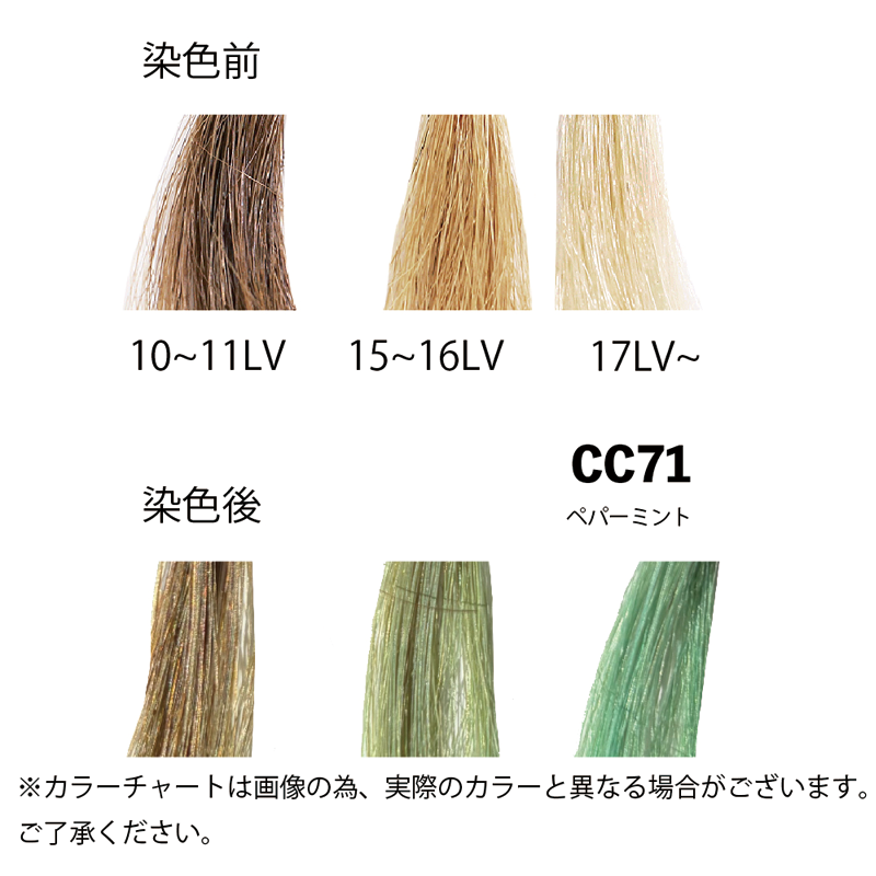 ※ ベースとなる髪色によっては、カラーチャートは実際に使用した際の発色と異なる場合もございます。
