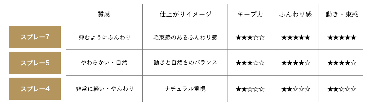 軽やかな使用感で、空気を含んだようなフォルムを保ちながら、「やんわり」感のあるスタイルを整えます。