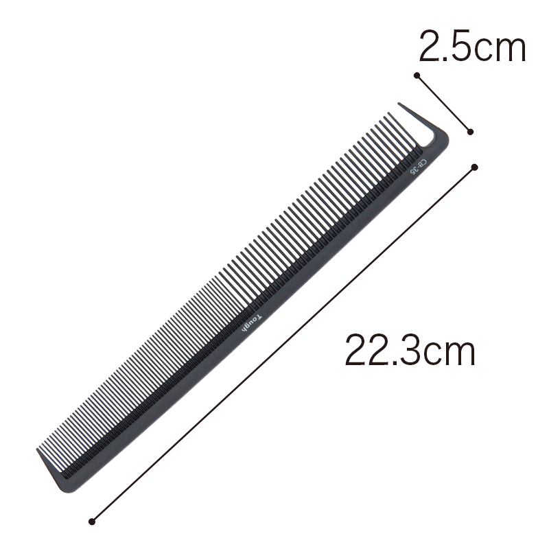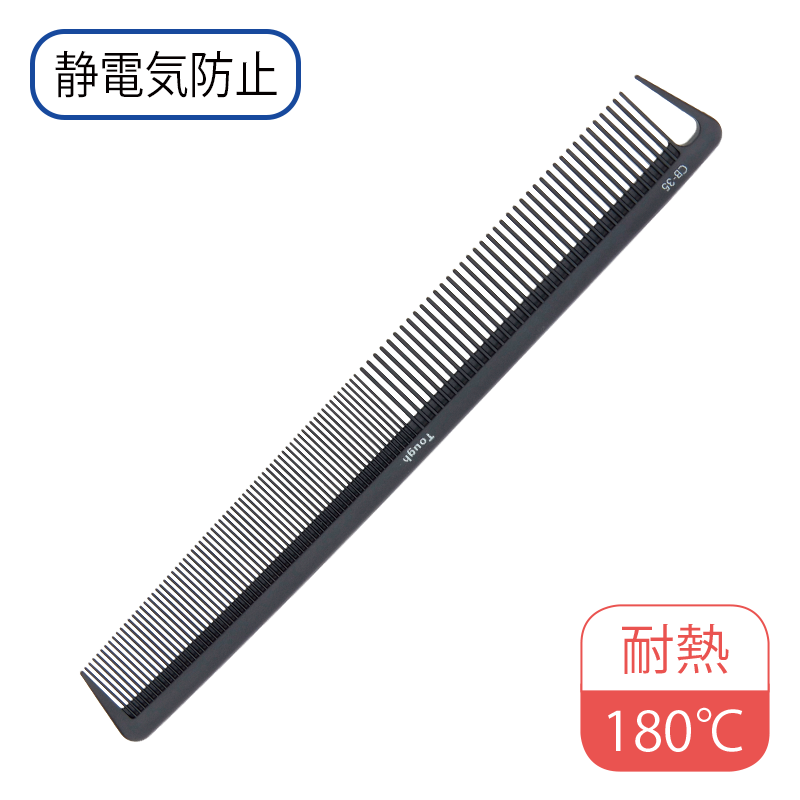 カーボン素材を使用しているため、適度な軽さと耐熱性に優れカット時の静電気を抑えます。